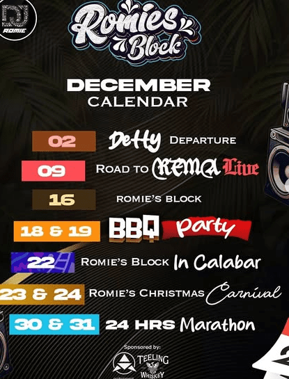 • Music concerts featuring top artists like Rema, Ayra Starr, and DJ Spinall.